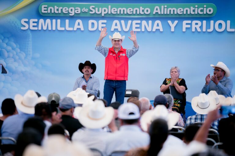 Ocampo, Dgo.— En gira de trabajo por Ocampo, el municipio más al norte del estado y frontera con Chihuahua, el gobernador Esteban Villegas Villarreal, acompañado por la presidenta municipal Teresa de Jesús Rosales Reyes, encabezó la entrega la Unidad Deportiva de Canutillo, 40 toneladas de semilla de avena para productores, equipamiento para seguridad pública, un…