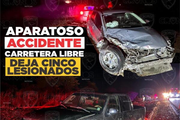 Álvaro Obregón, Dgo..- La noche de ayer 4 de marzo, alrededor de las 20:20 horas, se registró un aparatoso accidente automovilístico sobre la carretera libre Durango–Torreón, a la altura del entronque al poblado de Álvaro Obregón. El percance se trató de un choque entre una camioneta y un automóvil en color gris, lo que movilizó…