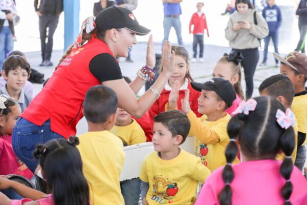 Canelas, Dgo.– En un ambiente de alegría y celebración, la presidenta del DIF Estatal, Marisol Rosso Rivera, llevó el Bebeleche Móvil a la comunidad de El Ojito de Camellones para festejar en grande el Día del Niño. Además, visitó la escuela primaria “5 de Febrero”, donde las y los alumnos disfrutaron de pastel, piñata, aguinaldos…