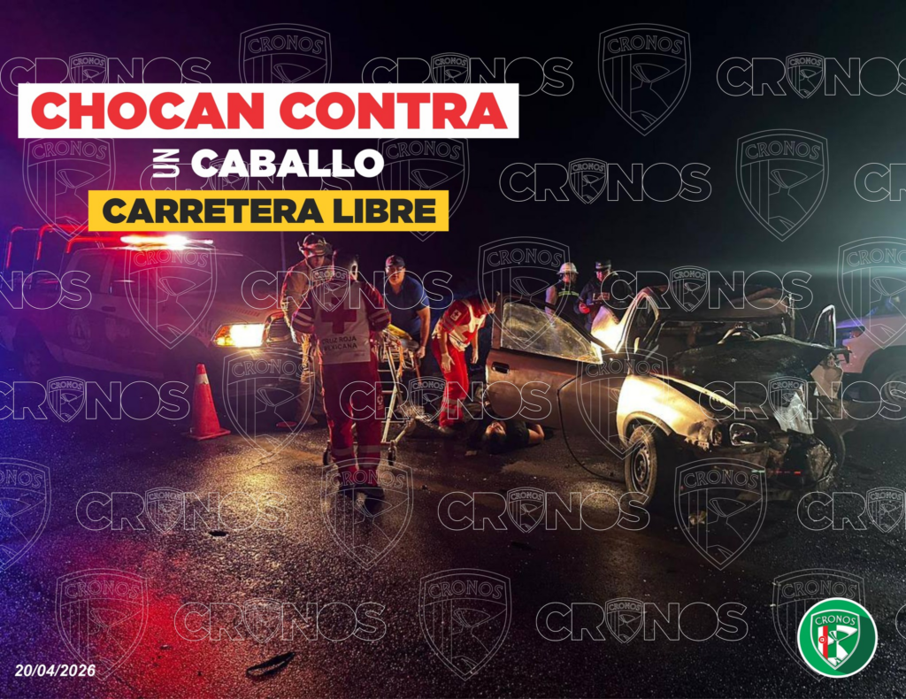 Chocolate, Dgo.- Un fuerte accidente ocurrido la noche del domingo dejó como saldo a tres integrantes de una familia lesionados, entre ellos un menor de 9 años, luego de que la camioneta en la que viajaban impactara contra un caballo y posteriormente se proyectara contra otro vehículo. El percance se registró alrededor de las 21:28…