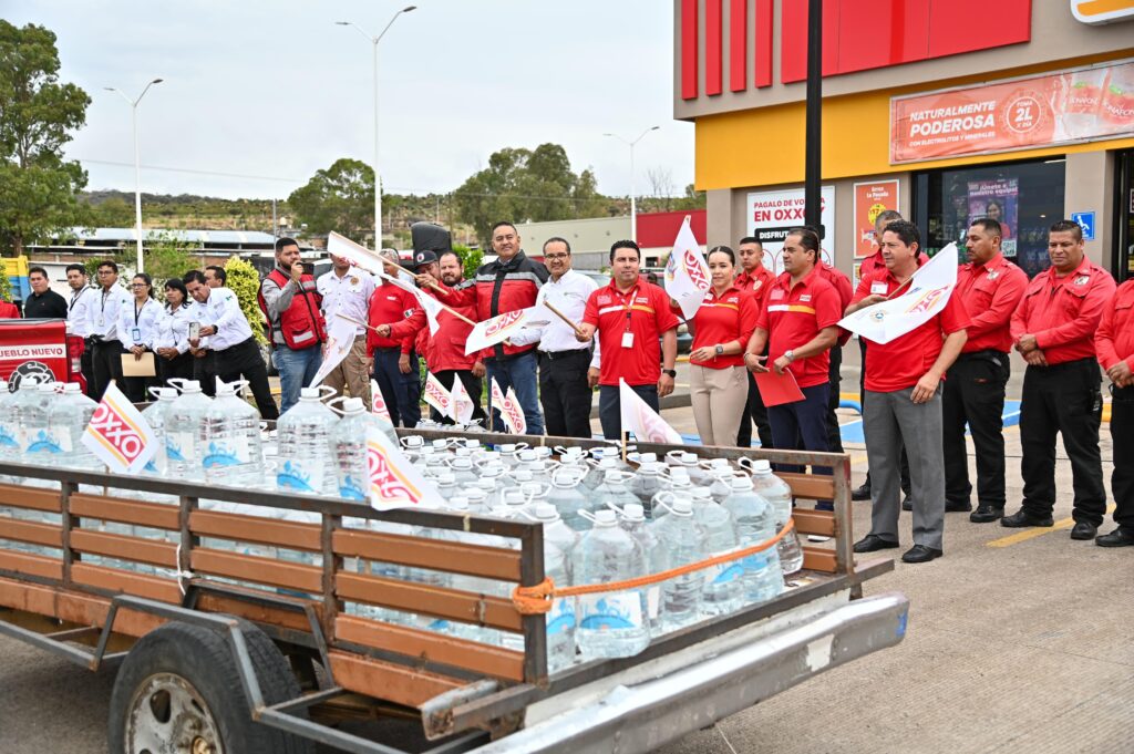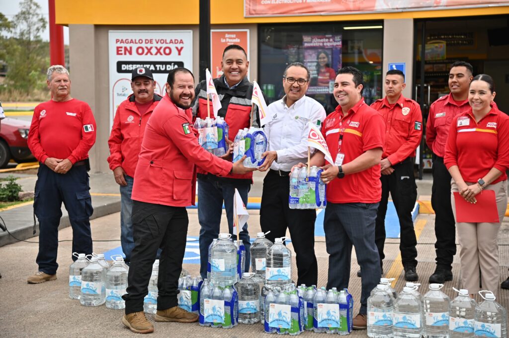 Con el respaldo de la Cadena Comercial OXXO, la Coordinación Estatal de Protección Civil recibió un donativo de 10 mil litros de agua embotellada, que será destinado a fortalecer la respuesta ante emergencias en esta temporada de lluvias, especialmente en comunidades que sufren interrupciones en el abasto del vital líquido.
