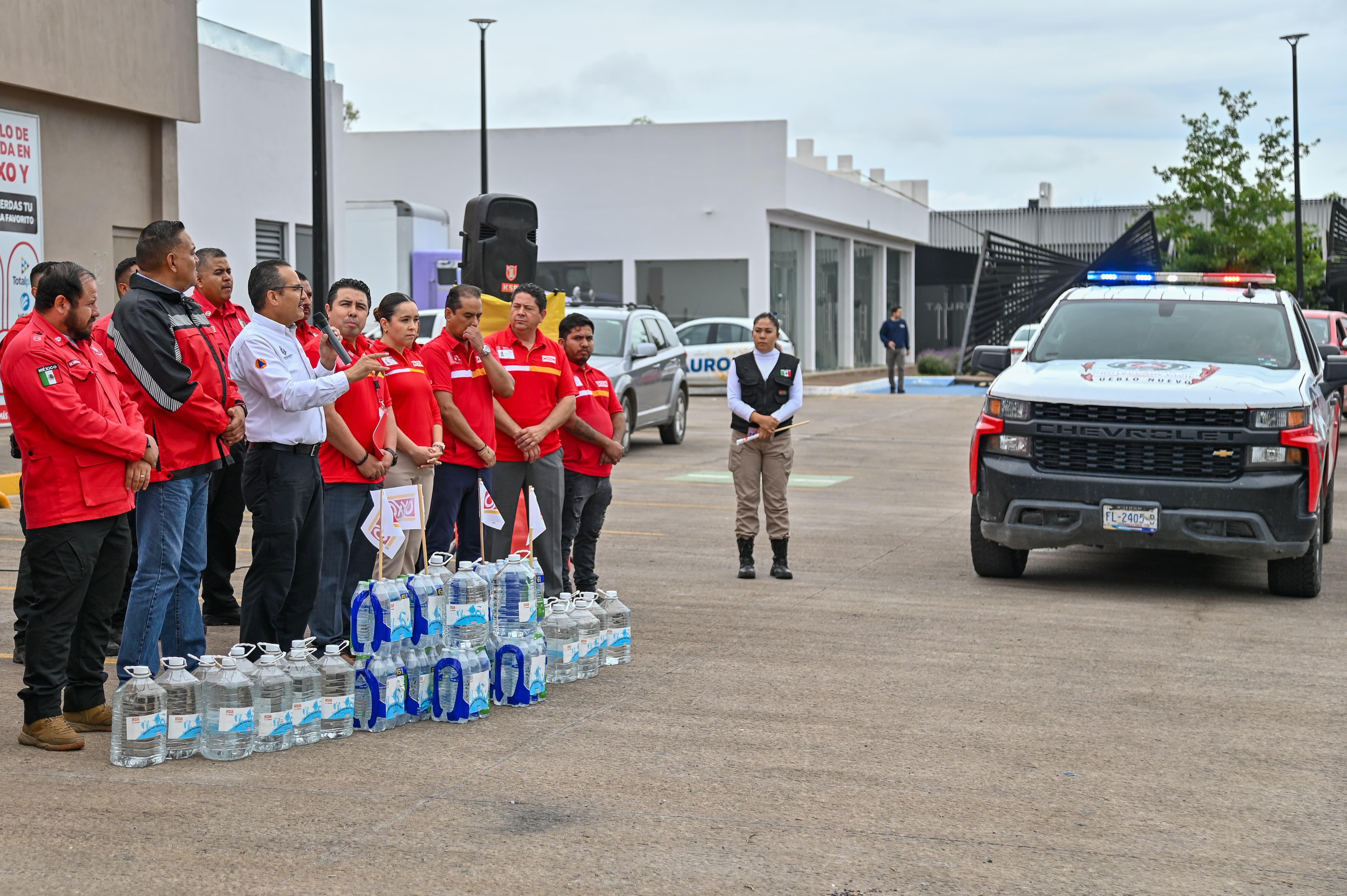 A esta entrega de donativo también asistió el comandante Gustavo Paredes, director de Protección Civil Municipal, quien, a nombre de los coordinadores municipales, resaltó que la distribución del agua será en beneficio de la población vulnerable durante estos días de contingencia.