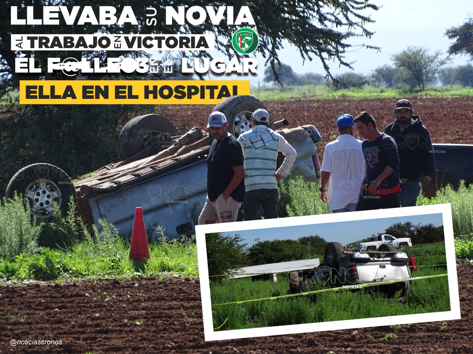 GPE. VICTORIA, DGO.- Una aparatosa volcadura ocurrida la mañana de este lunes sobre la carretera federal Durango-Torreón, a la altura del entronque al poblado Álvaro Obregón, cobró la vida de una joven pareja.