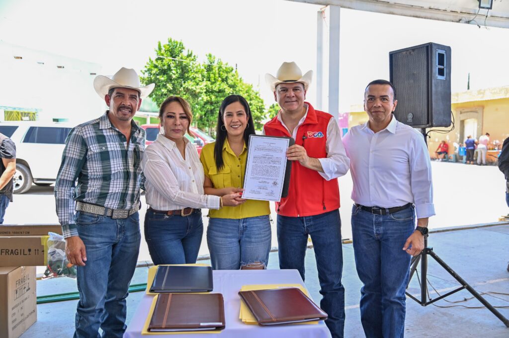 General Simón Bolívar, Dgo.– Con una inversión superior a los 14 millones de pesos, el gobernador Esteban Villegas Villarreal encabezó en el municipio General Simón Bolívar, una jornada de trabajo para entregar obras, apoyos sociales y títulos de propiedad en beneficio directo de cientos de familias, en coordinación con la presidenta municipal, Silvia Rangel Orona.