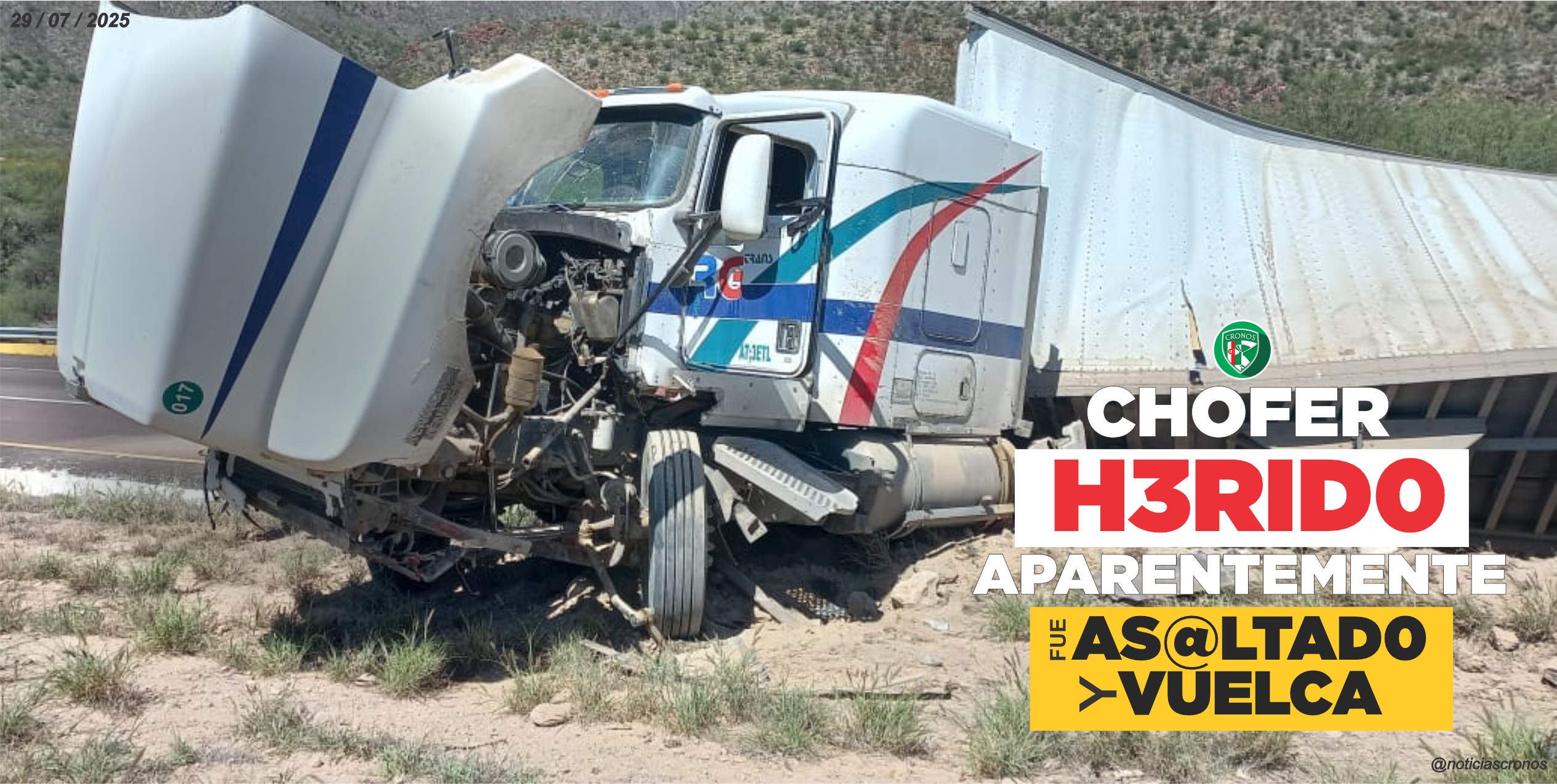 Al arribar al lugar, los equipos de emergencia encontraron al conductor de la pesada unidad con diversas heridas, entre ellas una hemorragia activa en el cuello y el tórax. Lo que llamó la atención de las autoridades fue la declaración del propio chofer, quien aseguró que las lesiones le fueron provocadas con un arma blanca durante un asalto, previo al accidente.