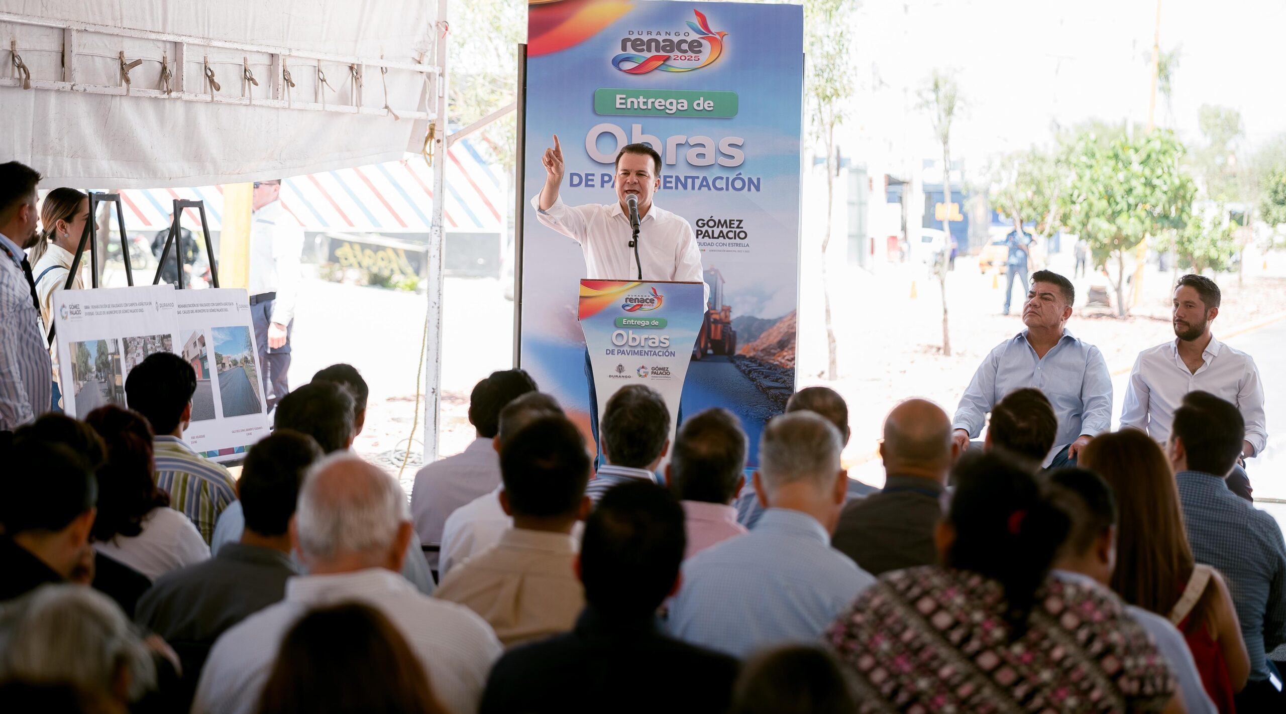 La rehabilitación de vialidades incluyó más de 21 mil metros cuadrados de pavimentación en colonias como Filadelfia, Fidel Velázquez, Santa Rosa y Santa Sofía, con una inversión superior a los 9.5 millones de pesos. Las acciones también contemplaron sustitución de drenaje, instalación de cárcamos y mejora en la movilidad urbana de Gómez Palacio.