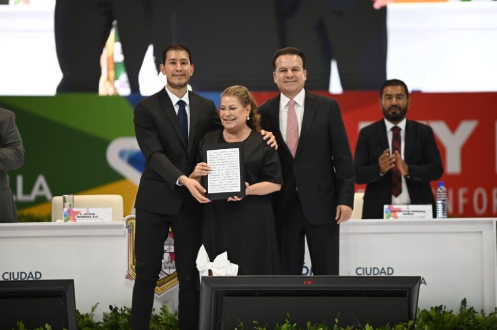 “Felicidades, Lety, sabes que te queremos y apreciamos; sé del trabajo complejo que te tocó en estos tres años. Yo creo que, de las tres administraciones, esta fue la más difícil por muchos factores: por cómo encontraste el municipio y por el tema de seguridad”, expresó el Mandatario Estatal al inicio de su mensaje, en el que subrayó la recuperación de la paz en la región con apoyo del Ejército y la Guardia Nacional.