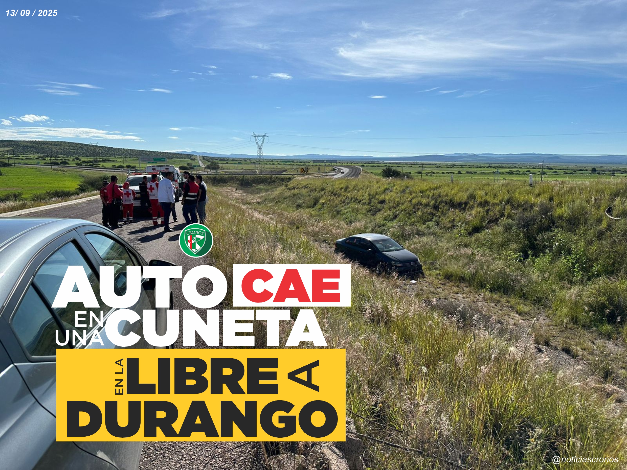 La mañana de este sábado se registró un accidente vial sobre la carretera libre a Durango, a la altura del entronque con la autopista entronque Jerónimo Hernández, donde un vehículo Volkswagen Jetta terminó dentro de una cuneta luego de que su conductor perdiera el control.