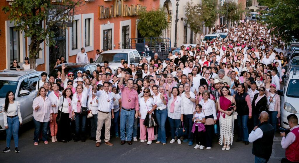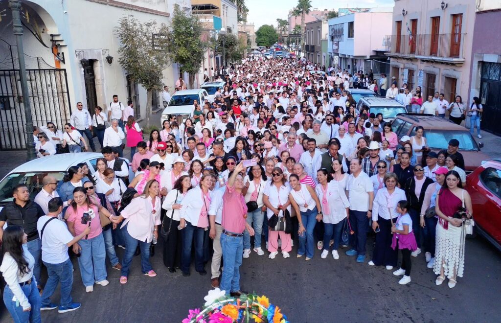 Durango se llenó de color, emoción y esperanza con la Callejoneada Rosa, un recorrido que reunió a familias, sobrevivientes, médicos, enfermeras y voluntarios para recordar la importancia de cuidar la salud y detectar a tiempo el cáncer de mama. La presidenta del DIF Estatal, Marisol Rosso, y el gobernador Esteban Villegas Villarreal caminaron junto a cientos de personas, en una tarde que se volvió símbolo de unión y fortaleza.