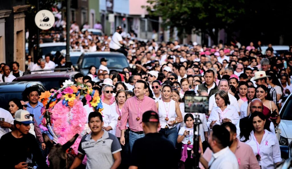 Por su parte, Rosa Elvia Jaques, otra de las sobrevivientes presentes, resaltó que la Callejoneada Rosa y los programas del DIF ayudan a crear conciencia y acercar la atención médica: “Todo esto nos ayuda para que otras mujeres se cuiden, que no tengan miedo, que se arrimen. El cáncer a tiempo es curable. Yo tuve cáncer metastásico, pero me atendí y gracias a Dios aquí estoy”. En su mensaje, reconoció al gobernador y a su esposa por su apoyo constante: “Son muy lindas personas, muchísimas gracias por todo lo que hacen por nosotras las sobrevivientes y por todas las mujeres”.