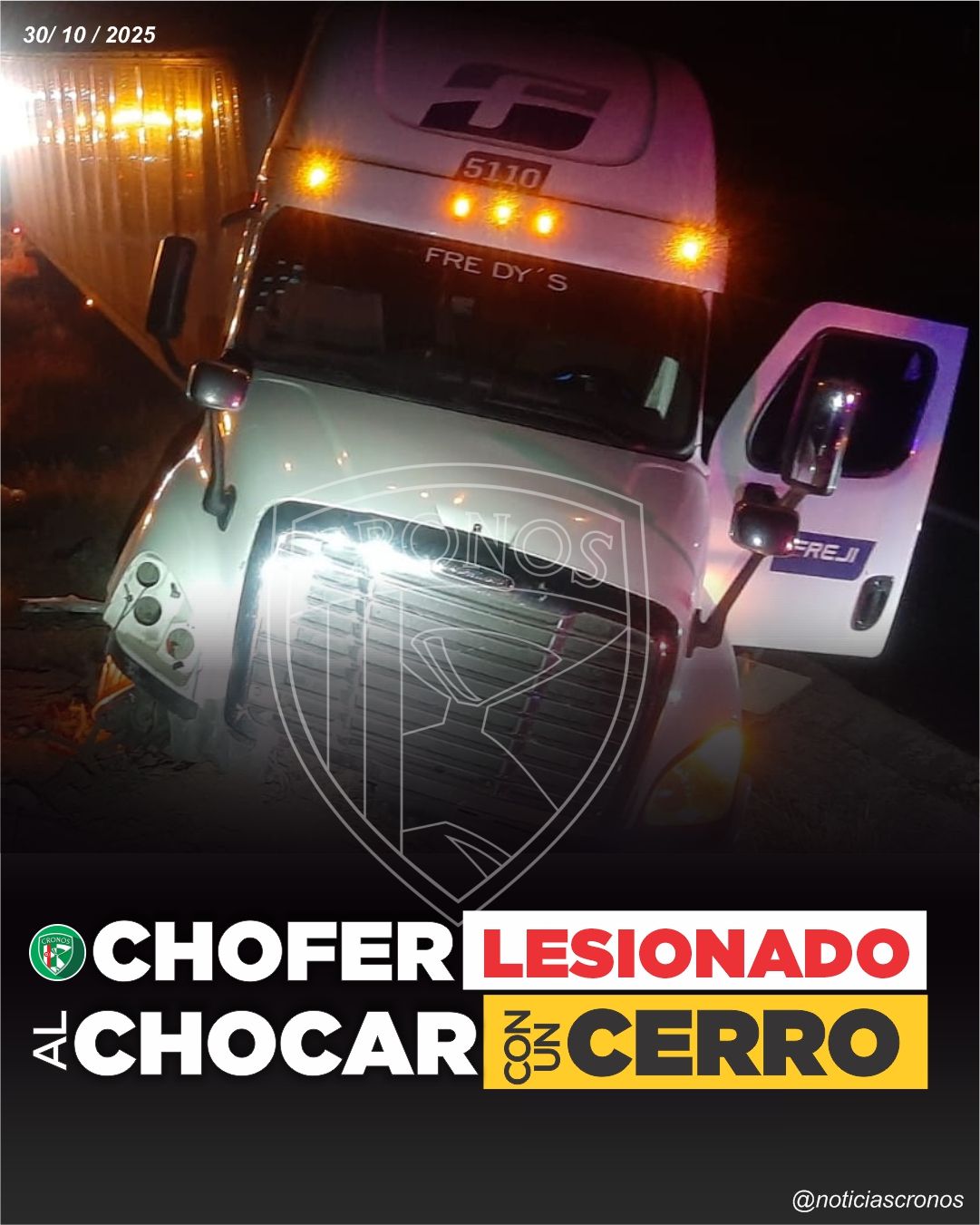 Cuencamé, Dgo.- La madrugada de este jueves, alrededor de la 1:00 a.m., se registró un accidente sobre la carretera libre Durango–Torreón, a la altura del kilómetro 151, donde el conductor de un tráiler perdió el control y se impactó contra la falda de un cerro, resultando lesionado.Al lugar acudieron diferentes corporaciones de seguridad de la región para brindar apoyo.