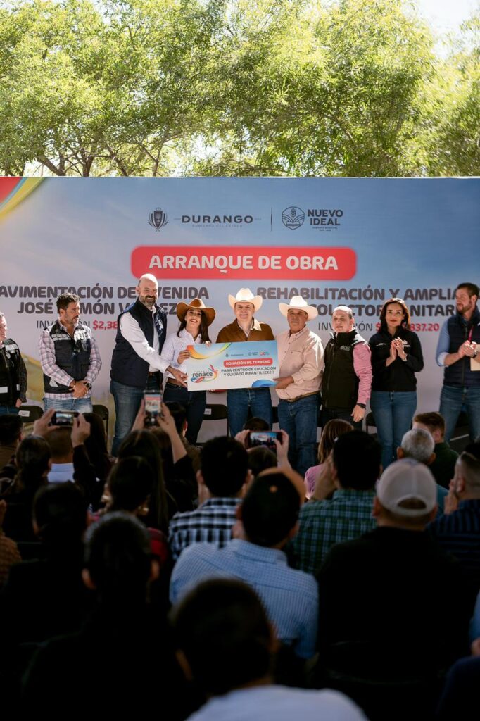 Nuevo Ideal, Dgo.— Con una inversión cercana a 18 millones de pesos, el gobernador Esteban Villegas Villarreal y la presidenta municipal Zaira Quiñones Valenzuela dieron inicio a un amplio paquete de obras para las familias de Nuevo Ideal, esta acción fortalecerán la infraestructura urbana, educativa y sanitaria del municipio. Los trabajos incluyen pavimentación con concreto hidráulico, ampliación de colectores, rehabilitación de drenaje y mejoras en instituciones educativas.