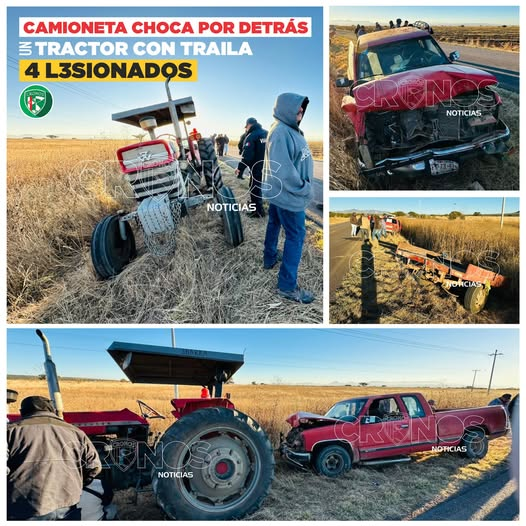 IGNACIO ALLENDE, DGO..- Esta mañana, aproximadamente a las 7:00 horas, se registró un accidente sobre el camino que conduce al poblado de Ignacio Allende. El percance fue un choque por alcance entre un tractor que remolcaba una traílla y una camioneta Chevrolet en color rojo.
