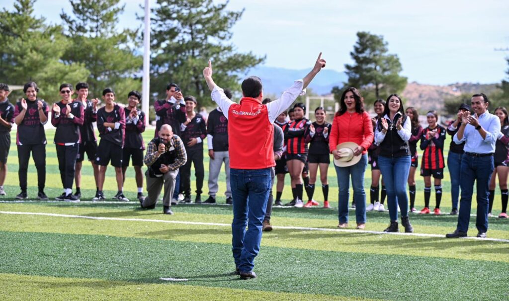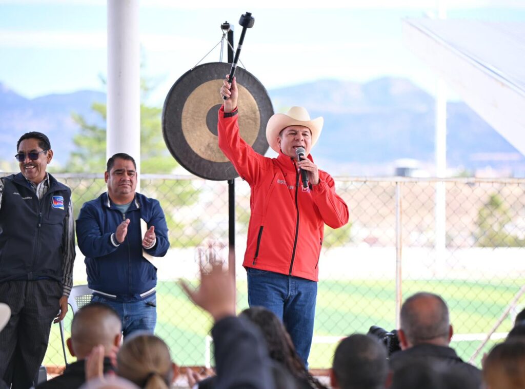 Santiago Papasquiaro, Dgo.– Con una inversión de 26.5 millones de pesos, el gobernador Esteban Villegas Villarreal y la presidenta municipal Karen Pérez encabezaron una gira de trabajo donde inauguraron la cancha pública “El Volcán”, supervisaron obras y anunciaron nuevos proyectos para el municipio. “Ya se le llegó la hora a Santiago”, afirmó el gobernador al confirmar más acciones para esta región.