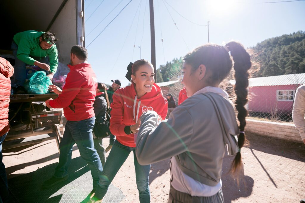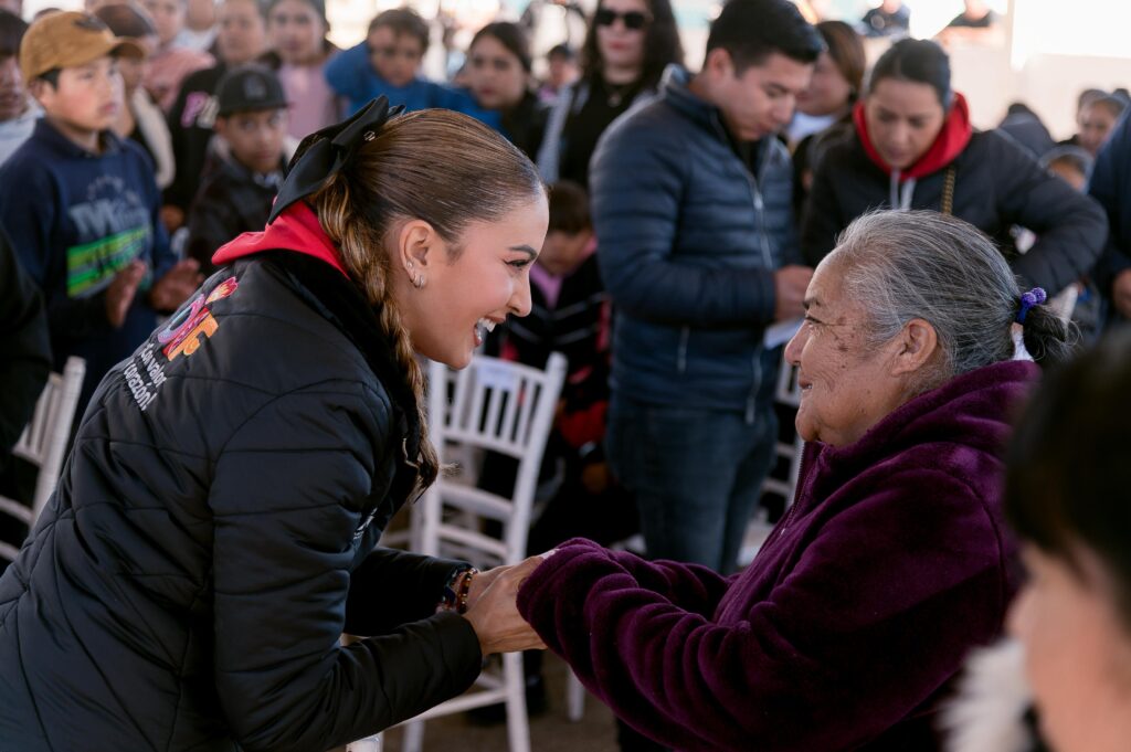 Durante la visita, Marisol recibió junto con niñas, niños y familias el camión de la Ruta de las Sonrisas, iniciativa que cuenta con el respaldo del gobernador Esteban Villegas Villarreal y mediante la cual se entregaron juguetes, cobijas y apoyos alimentarios, además de dispositivos de asistencia como andaderas y bastones.