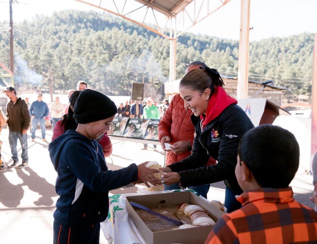 La Rosilla, Guanaceví, Dgo.– En la zona sierra de Durango, considerada la más fría del país, la presidenta del DIF Estatal, Marisol Rosso Rivera, visitó la comunidad de La Rosilla, donde convivió con las familias y llevó apoyos invernales, regalos para niñas y niños, además de compartir la tradicional rosca de Reyes, acciones que fortalecen el bienestar de las familias y ayudan a enfrentar las bajas temperaturas de la temporada.