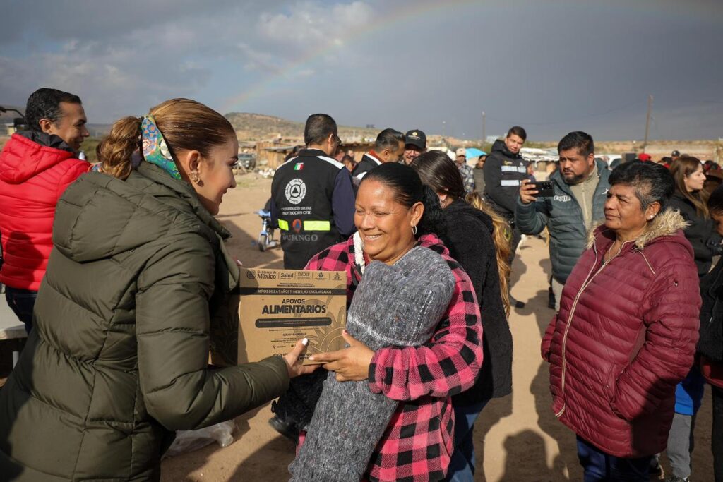 Ante el intenso frío que prevalece en Durango, entrega Marisol Rosso apoyos invernales a familias del Cerro de las Escobas