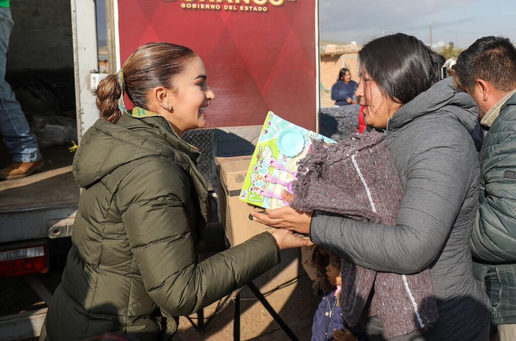 Ante el clima gélido que se ha registrado en Durango durante los últimos días, las familias del Cerro de las Escobas recibieron cobijas y apoyos alimentaria para enfrentar las bajas temperaturas, además de juguetes para niñas y niños. Durante el recorrido, la presidenta del DIF Estatal, Marisol Rosso Rivera, informó que programas como Médico en tu Casa, los servicios asistenciales y la regularización de actas de nacimiento a través del Registro Civil llegarán directamente hasta sus hogares.