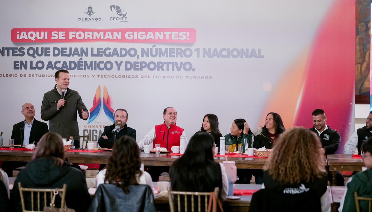 En un hecho histórico para la educación en Durango, el gobernador Esteban Villegas Villarreal reconoció a los alumnos del Colegio de Estudios Científicos y Tecnológicos del Estado de Durango (CECyTE) que posicionaron al estado en el primer lugar nacional en los ámbitos académico y deportivo 2025, resultado que refleja el respaldo del Gobierno del Estado y el acompañamiento permanente de madres y padres de familia.