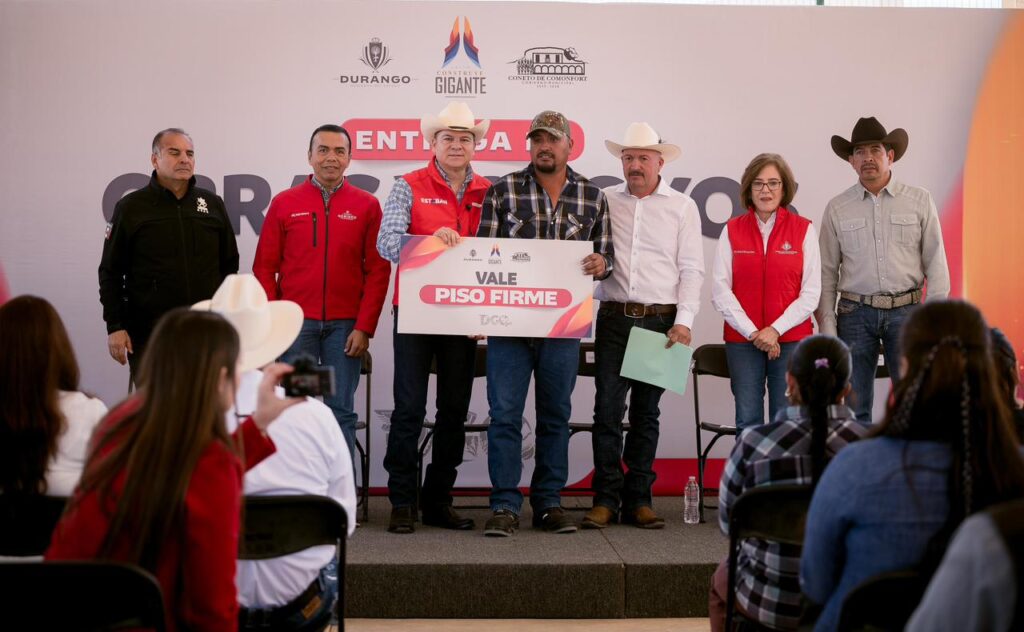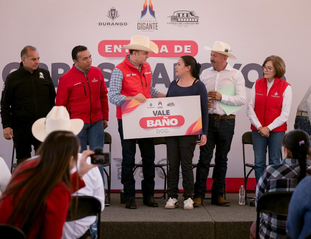 Coneto de Comonfort, Dgo.– En gira de trabajo por este municipio Coneto de Comonfort, el gobernador Esteban Villegas Villarreal, junto al presidente municipal Jaime Soto Ochoa, encabezó la entrega de apoyos de mejoramiento de vivienda, acciones de agua potable y equipamiento de seguridad. Estas acciones incluyeron vales para la construcción de baños y pisos firmes, techos seguros, calentadores solares y tinacos, con el objetivo de mejorar las condiciones de vida y garantizar servicios básicos en los hogares.