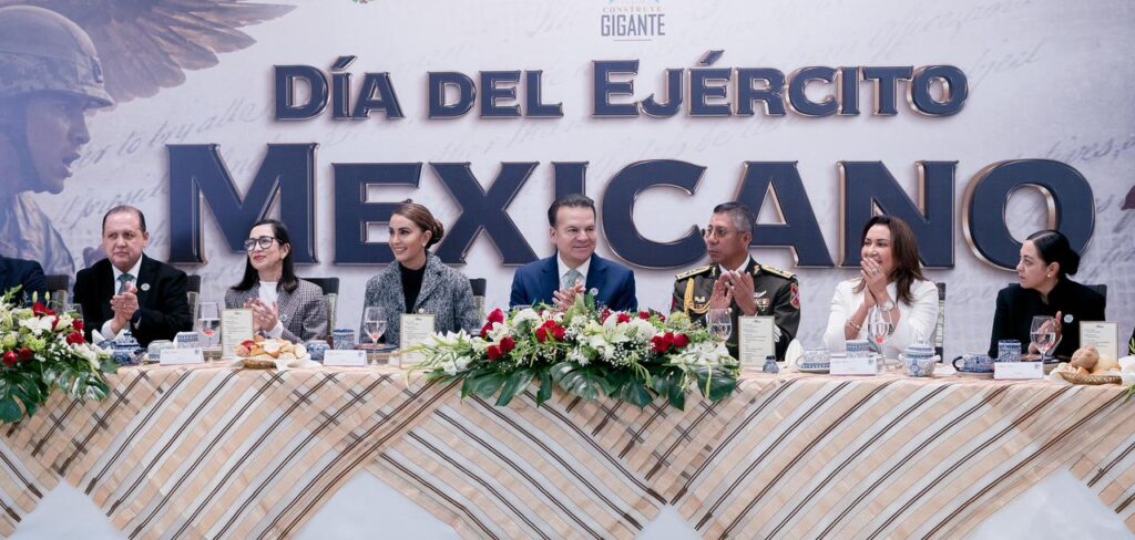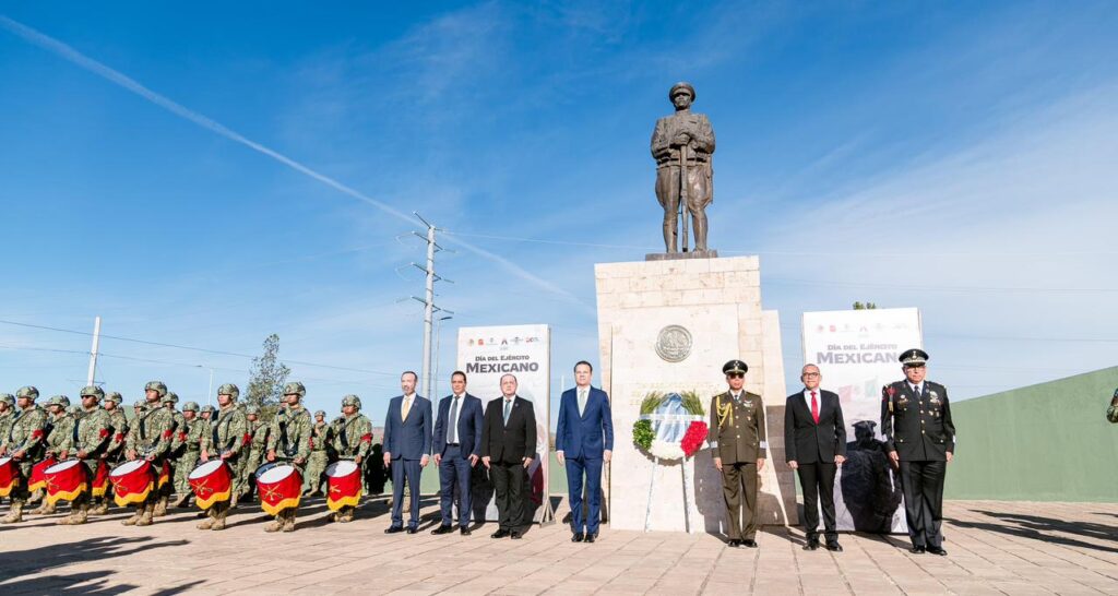 En el marco del 113 Aniversario de la Creación del Ejército Mexicano, el gobernador Esteban Villegas Villarreal, acompañado de Marisol Rosso Rivera; el alcalde Toño Ochoa; y el Gral. de Bgda. E.M. Salvador Alvarado Ramírez, Comandante de la Décima Zona Militar, encabezó el homenaje realizado en el Monumento al Defensor de la Patria y en el Campo Militar 5 de Mayo, en un acto dedicado a reconocer la disciplina, lealtad y vocación de servicio de las mujeres y hombres que integran el Ejército Mexicano, así como su compromiso permanente con la seguridad y la paz del país.
