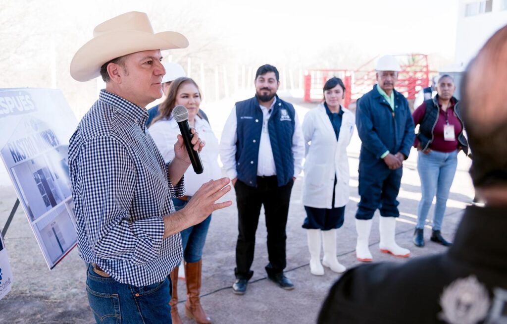 Cuencamé, Dgo.– Con mejores condiciones de higiene y un nuevo vehículo cerrado para el traslado de carne, el rastro municipal de Cuencamé inicia una nueva etapa que brinda mayor seguridad sanitaria a las familias. Durante la gira de trabajo del gobernador Esteban Villegas y la presidenta municipal Edith Orozco entregaron la primera etapa de su renovación, fortaleciendo este servicio básico para el municipio.
