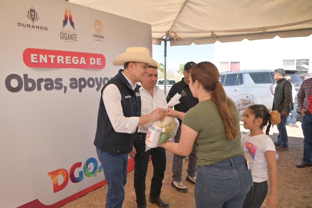 San Luis del Cordero, Dgo.– Con obras y apoyos que fortalecen la seguridad, mejoran los servicios y generan nuevas oportunidades para las familias, el gobernador Esteban Villegas Villarreal, junto al presidente municipal Andrés Rubio Castro, encabezó la entrega de acciones en beneficio de San Luis del Cordero, como parte de la gira de trabajo que realiza por los 39 municipios del estado.