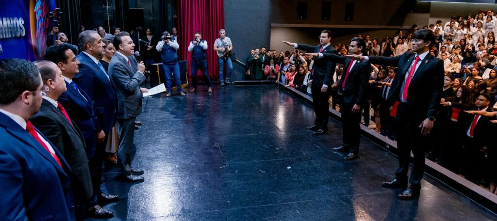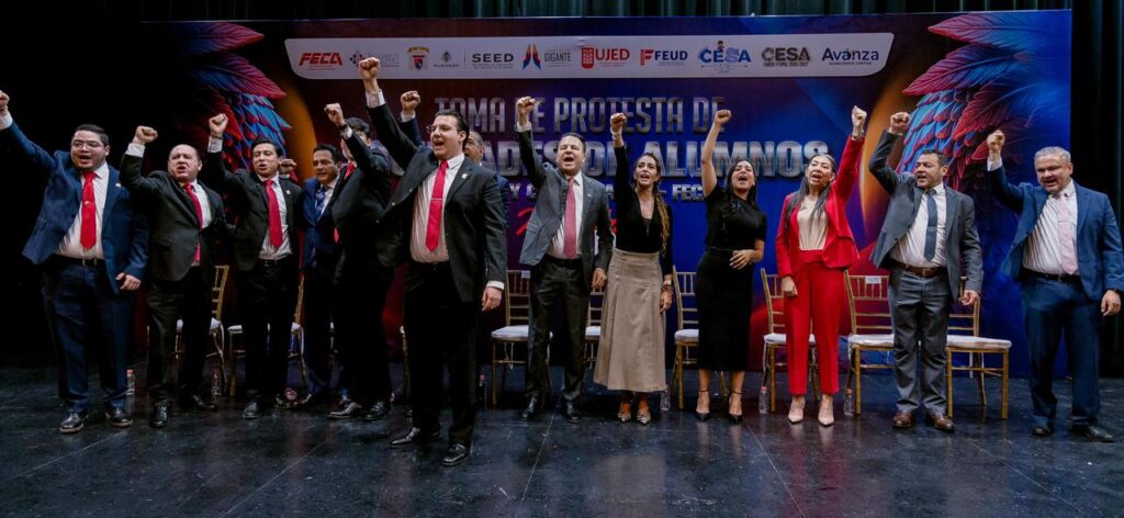 “Vamos a cumplirle a la universidad y a sus estudiantes con apoyos que se vean y se sientan”, afirmó el gobernador Esteban Villegas Villarreal, al tomar protesta a las Sociedades de Alumnos de la Facultad de Economía, Contaduría y Administración (FECA), Facultad de Derecho y Ciencias Políticas (FADERyCIPOL) y Facultad de Medicina y Nutrición (FAMEN), acompañado por el rector Ramón García Rivera, donde se anunciaron acciones concretas para mejorar las condiciones en las facultades.