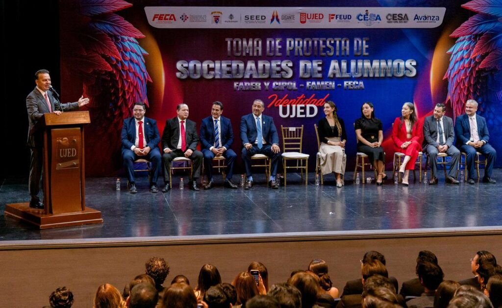 El presidente de la FEUD, Jaison Santillán Gutiérrez destacó que, el Gobernador es un hombre que sabe y conoce de las necesidades de los estudiantes y que es un referente para los alumnos, al agradecerle su compromiso con los universitarios para juntos construir una UJED más fuerte, además reiteró su apoyo a los nuevos presidentes para trabajar en equipo.