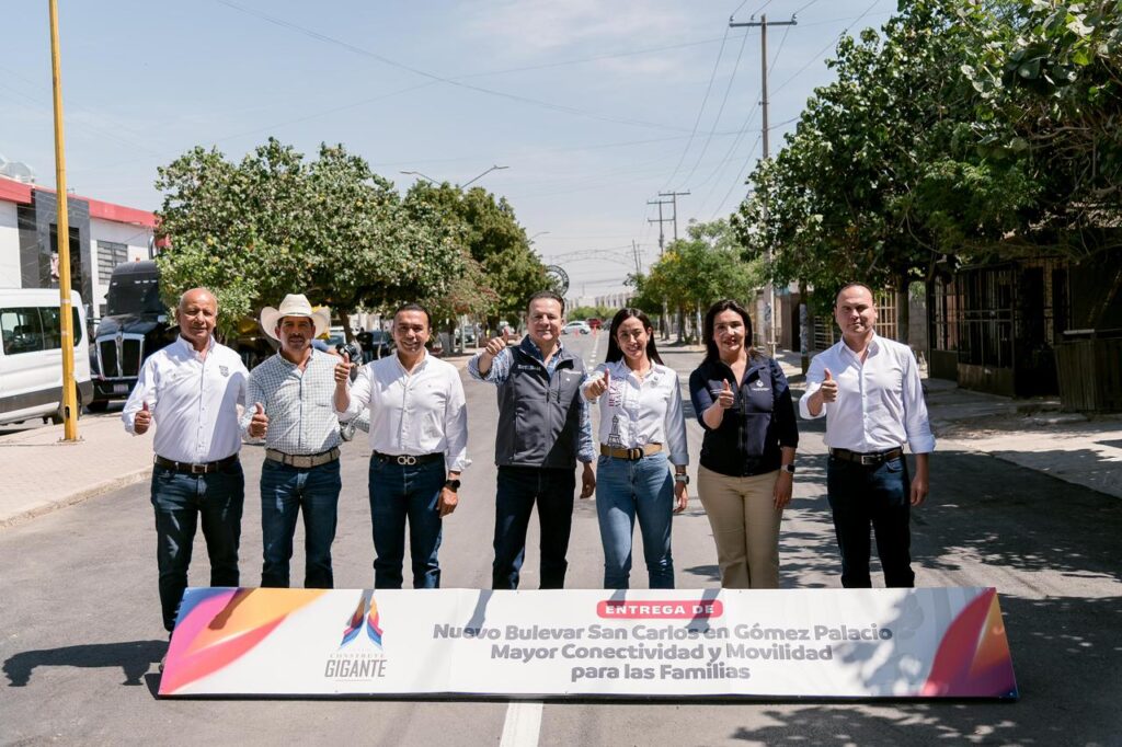 Gómez Palacio, Dgo.– Con mejores condiciones de movilidad, mayor seguridad y una conexión más ágil hacia vialidades principales, el gobernador Esteban Villegas Villarreal y la presidenta municipal Betzabé Martínez Arango entregaron la obra de pavimentación del bulevar San Carlos en el fraccionamiento San Antonio, como parte de un plan integral para transformar la infraestructura urbana del municipio.