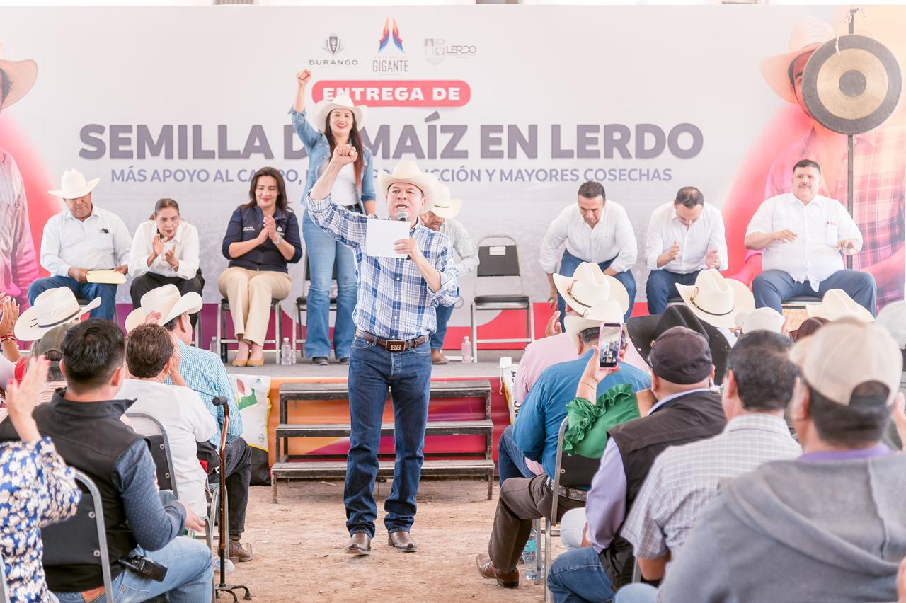 Villa La Loma, Lerdo, Dgo.– Con la entrega de semilla de maíz forrajero que realizó el gobernador Esteban Villegas Villarreal, productores de la región destacaron el respaldo que hoy reciben para fortalecer su actividad, al contar con insumos de calidad y, sobre todo, en el momento oportuno para iniciar la siembra, lo que se traduce en mejores condiciones para sus cosechas.
