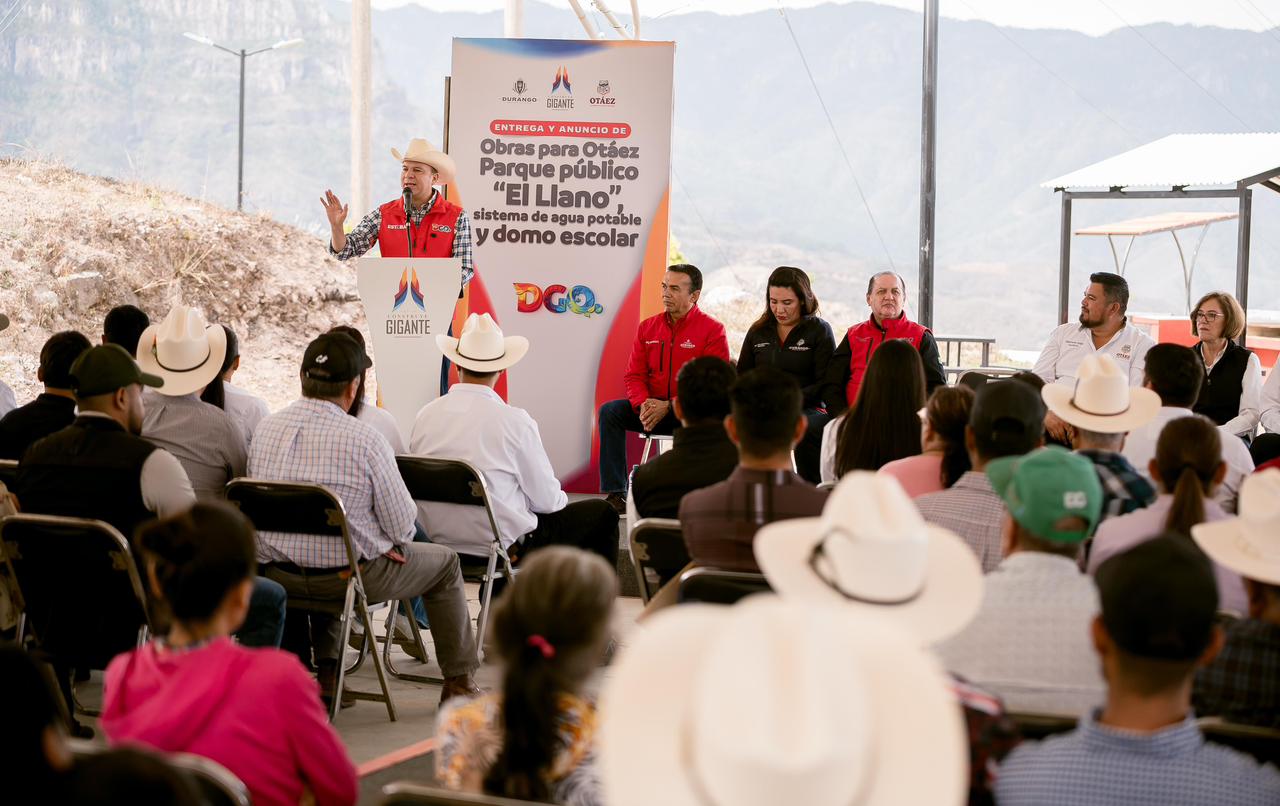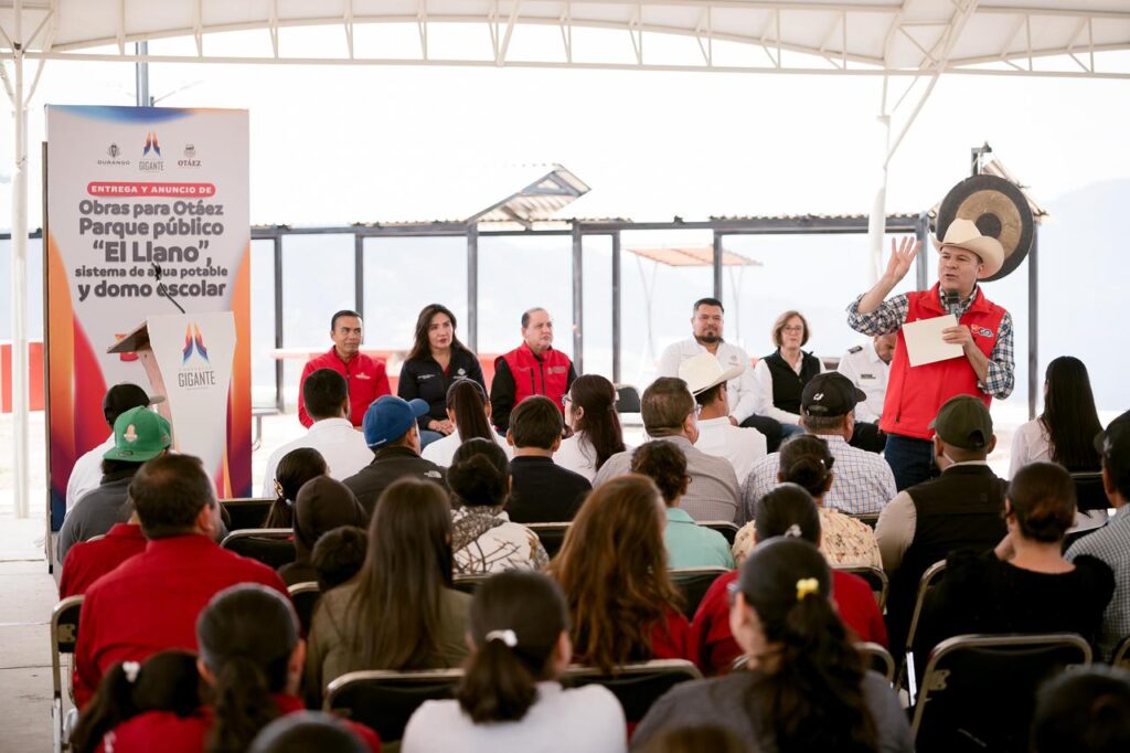 Otáez, Dgo.– Como parte de su gira por municipios de las Quebradas, el gobernador Esteban Villegas Villarreal visitó Otáez, Topia y Canelas, donde en Otáez, junto al presidente municipal Daniel Guerrero Sarabia, entregó la segunda etapa de la unidad deportiva El Llano y anunció acciones para mejorar la calidad de vida de las familias, principalmente en agua, vivienda, salud y espacios públicos.