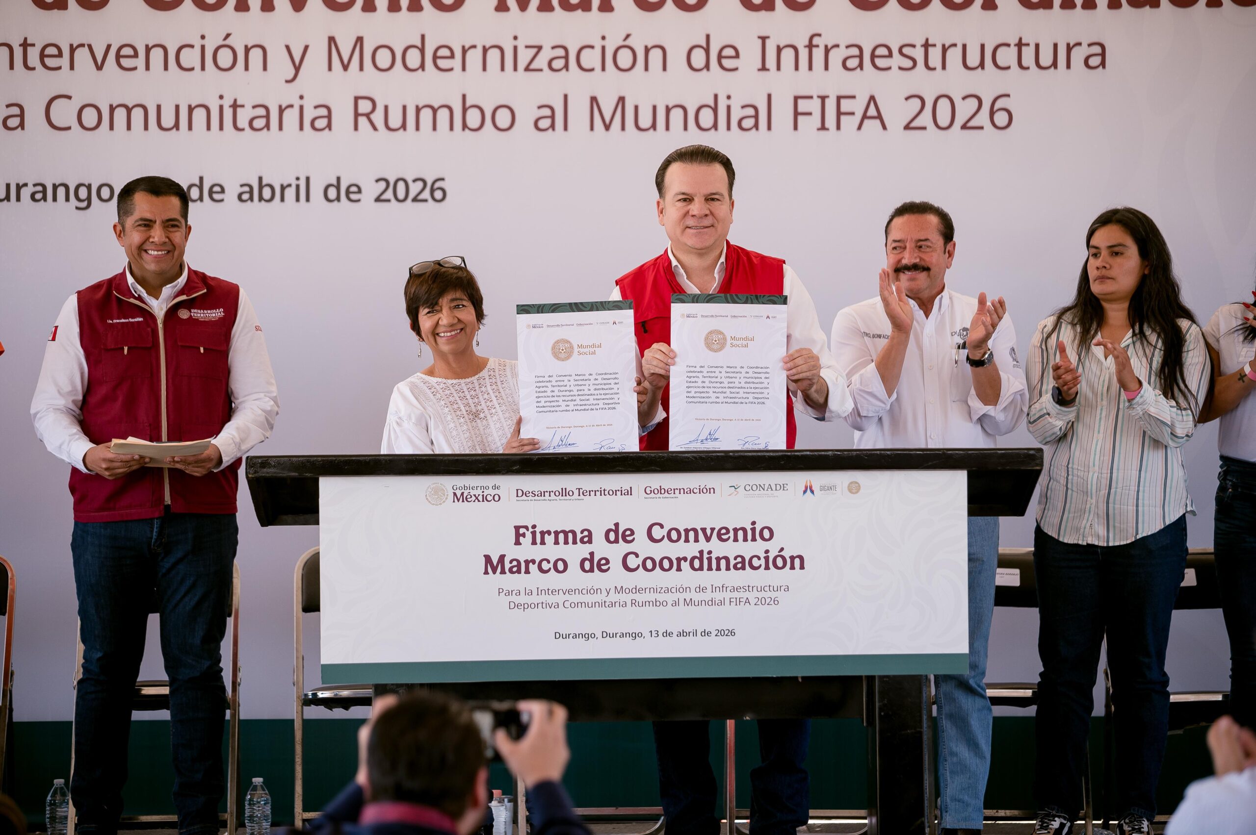 Como parte de la estrategia nacional rumbo al Mundial 2026 del Gobierno de México, el gobernador Esteban Villegas Villarreal firmó con la secretaria de Desarrollo Agrario, Territorial y Urbano, Edna Vega Rangel, el Convenio Marco de Coordinación para la modernización de infraestructura deportiva comunitaria, que permitirá la construcción de 27 nuevas canchas y la rehabilitación de 11 más en 16 municipios del estado.