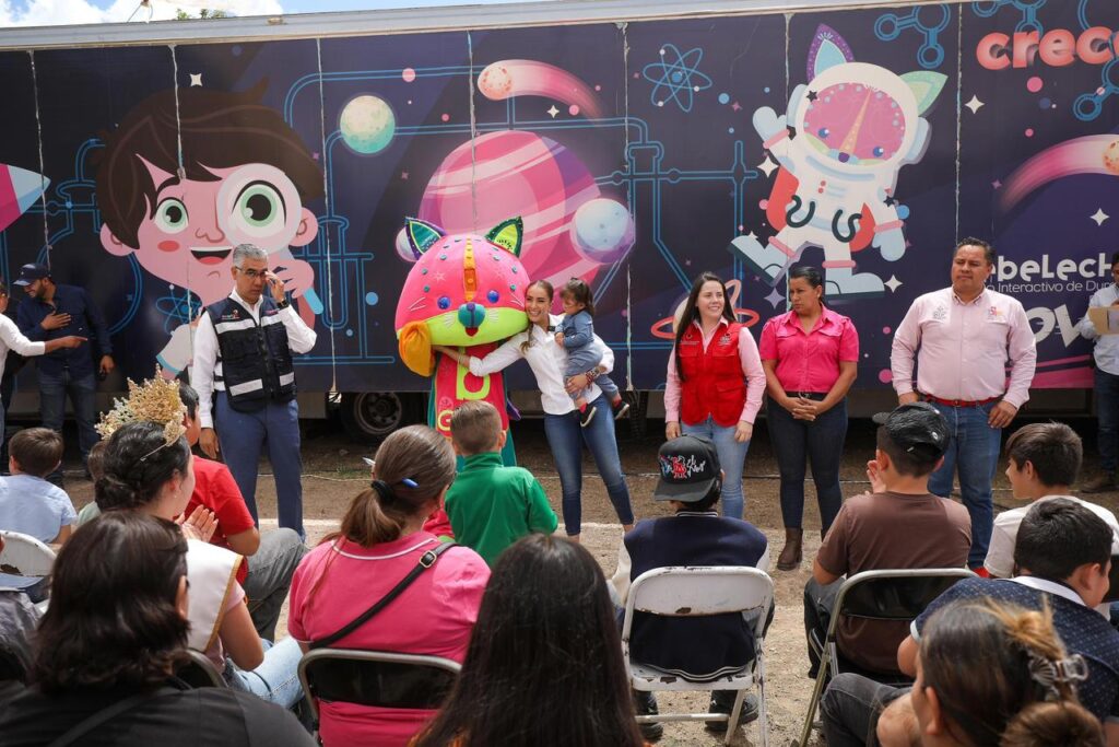 En el recorrido también se celebró la llegada del Bebeleche Móvil, que ha registrado una alta participación de niñas y niños. El director del Museo Interactivo Bebeleche, Alfredo Andrade Gallegos, señaló que la unidad recibe mantenimiento constante para continuar llevando experiencias educativas a distintos municipios del estado, mientras que madres de familia como Miriam Villarreal agradecieron que estos apoyos acerquen salud y atención a la niñez de Canelas.