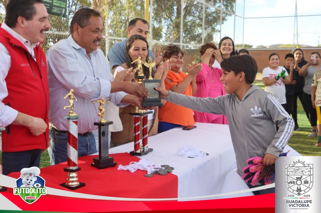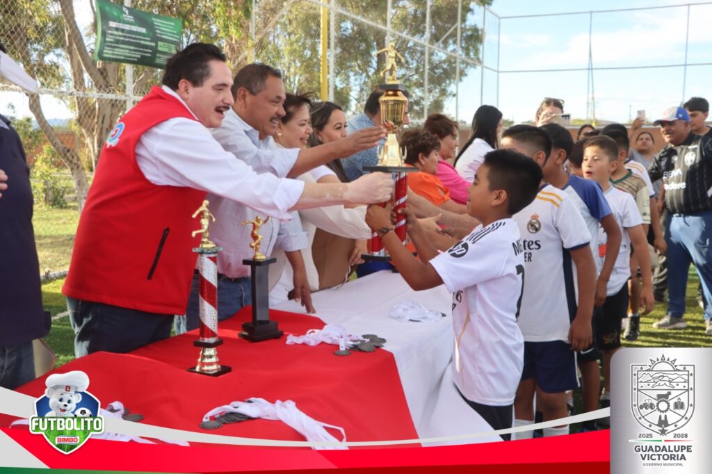 Guadalupe Victoria.- Con un ambiente lleno de entusiasmo, alegría y espíritu deportivo, la tarde de ayer se llevó a cabo la premiación del Mundialito Bimbo, evento que reunió a decenas de niñas y niños destacados por su participación en este importante torneo.