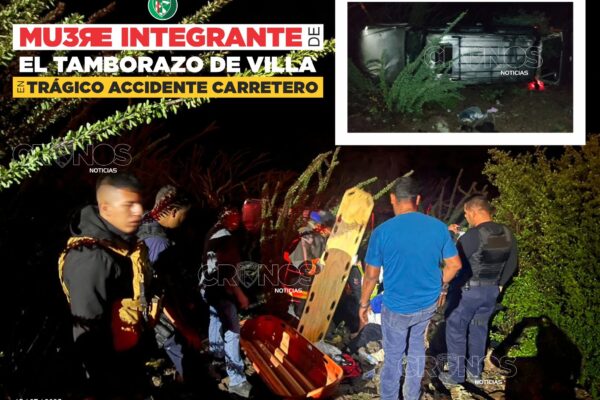 SAN JUAN DEL RÍO, DGO..- La madrugada de este martes, Aproximadamente a la 1:20 a.m., se tiñó de luto para el gremio musical del estado y la Región de los Llanos, luego de que un fatal accidente automovilístico cobrara la vida de un integrante del grupo “El Tamborazo de Villa” y dejara al menos seis…